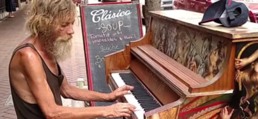 His name is Donald Gould aka ‘The Homeless Piano Man’.