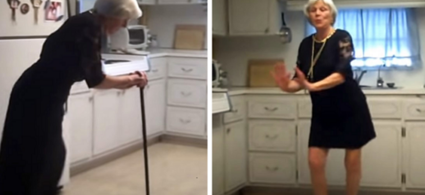 This grandma looks ready to head out the door in her classy black dress. But she doesn’t leave her house. Anne Temple uses her cane to aid her to the dining table. The 82-year-old then takes a supplement that can only be compared to magic. In a few seconds, she starts moving to the music and stands up. But where’s her cane now?